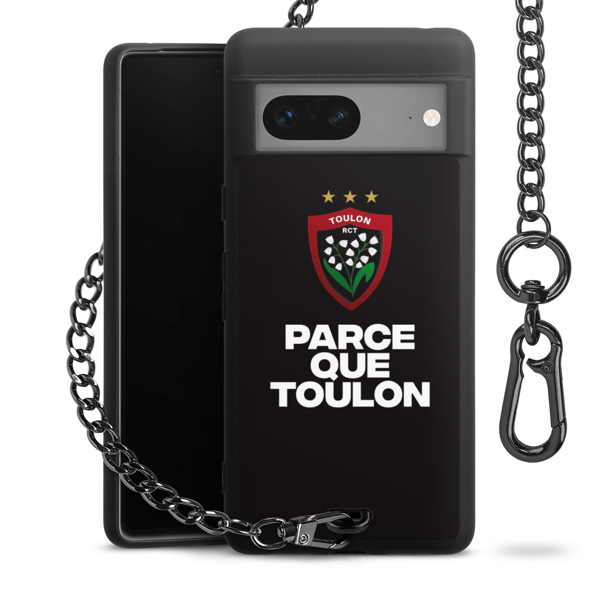 Die mattschwarze Silikon-Handyhülle besteht aus robustem TPU (thermoplastisches Polyurethan). Sie ist flexibel und schützt Dein Smartphone vor Stößen und Kratzern. Die Kette sowie der Karabinerhaken sind aus Metall in Gunmetal-Optik gefertigt. Für dieses Produkt kommen ausschließlich TÜV-geprüfte Materialien zum Einsatz.