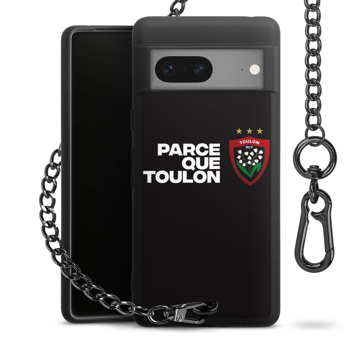 Die mattschwarze Silikon-Handyhülle besteht aus robustem TPU (thermoplastisches Polyurethan). Sie ist flexibel und schützt Dein Smartphone vor Stößen und Kratzern. Die Kette sowie der Karabinerhaken sind aus Metall in Gunmetal-Optik gefertigt. Für dieses Produkt kommen ausschließlich TÜV-geprüfte Materialien zum Einsatz.