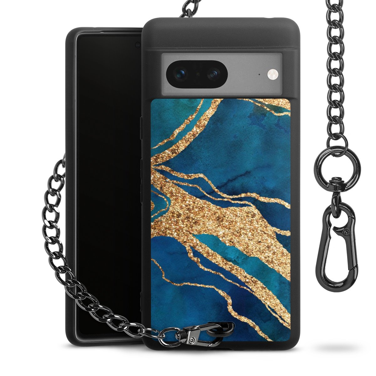 • Mattschwarze Handyhülle mit Metallkette