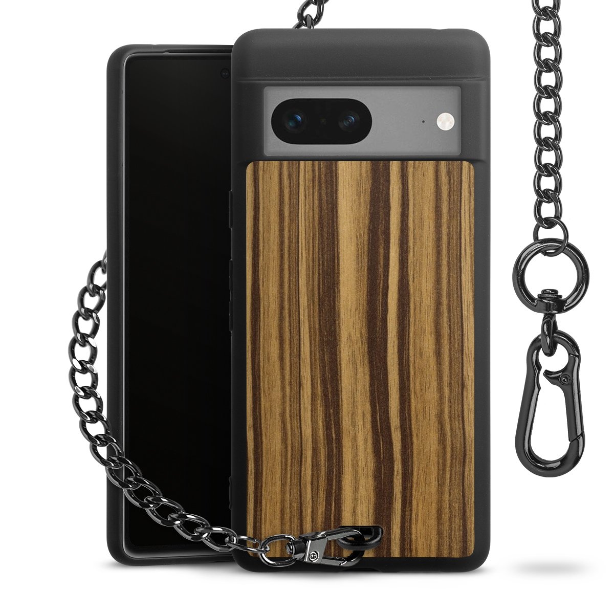 - Mattschwarze Handyhülle mit Metallkette