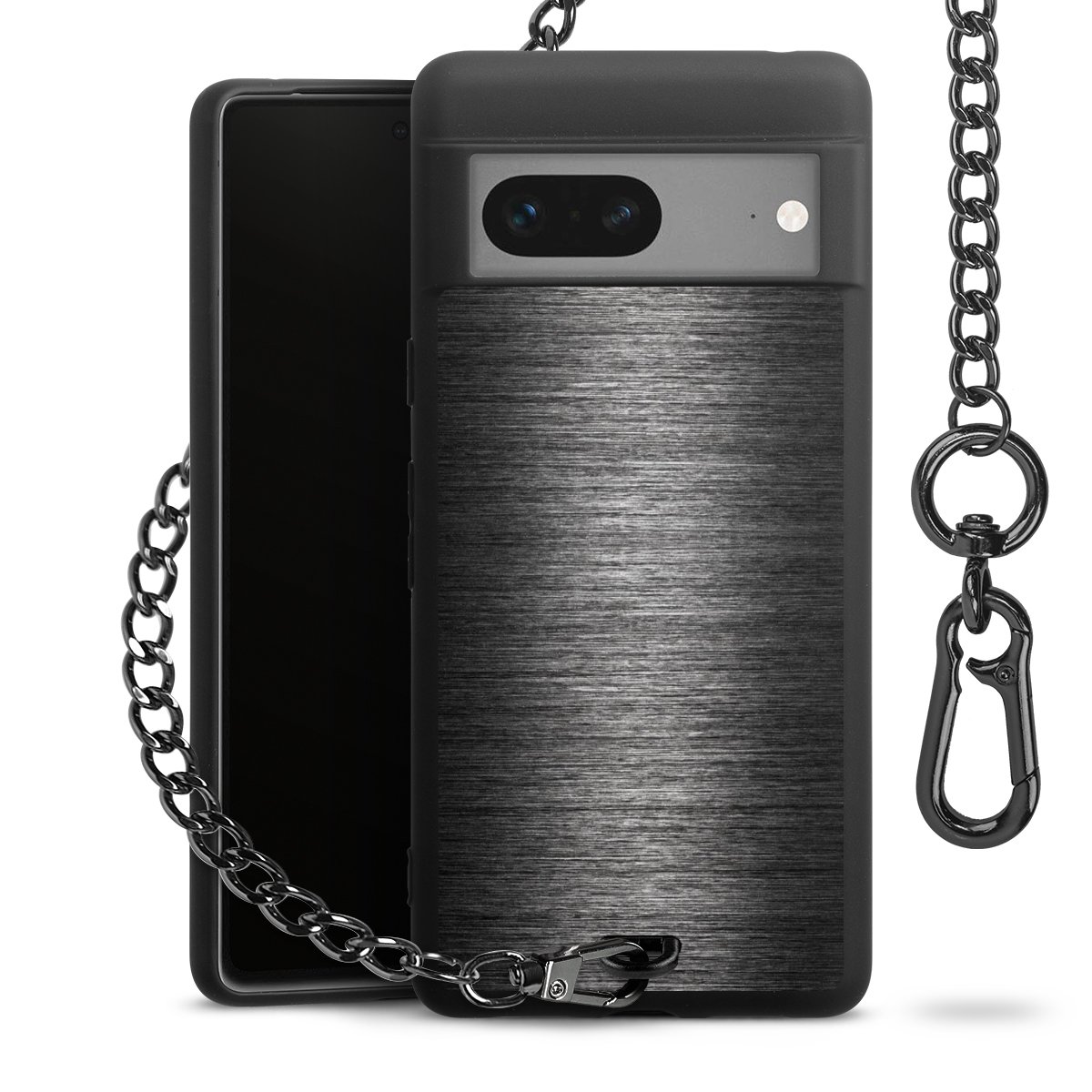 • Mattschwarze Handyhülle mit Metallkette