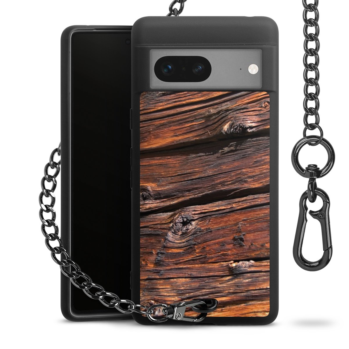 - Mattschwarze Handyhülle mit Metallkette