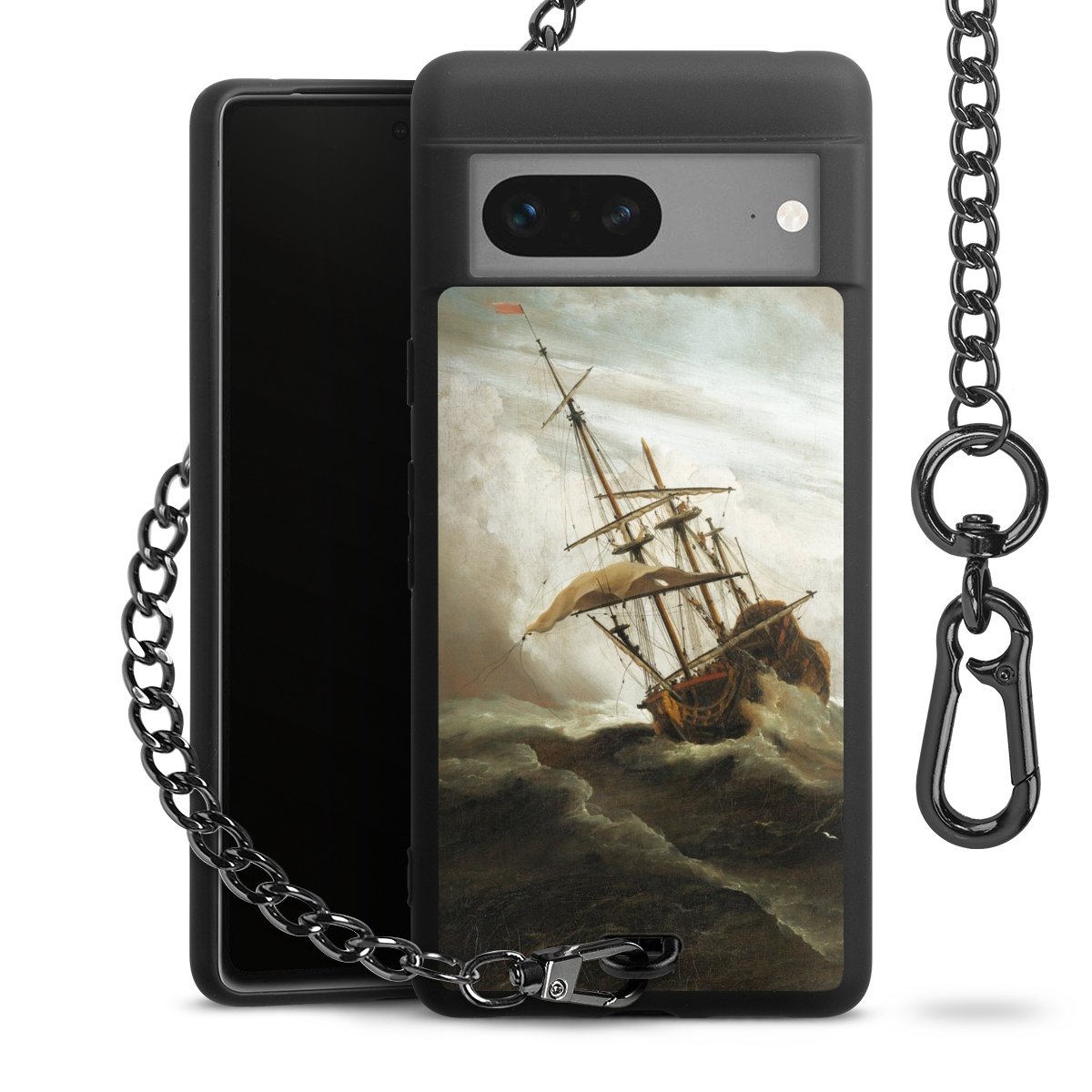 - Mattschwarze Handyhülle mit Metallkette