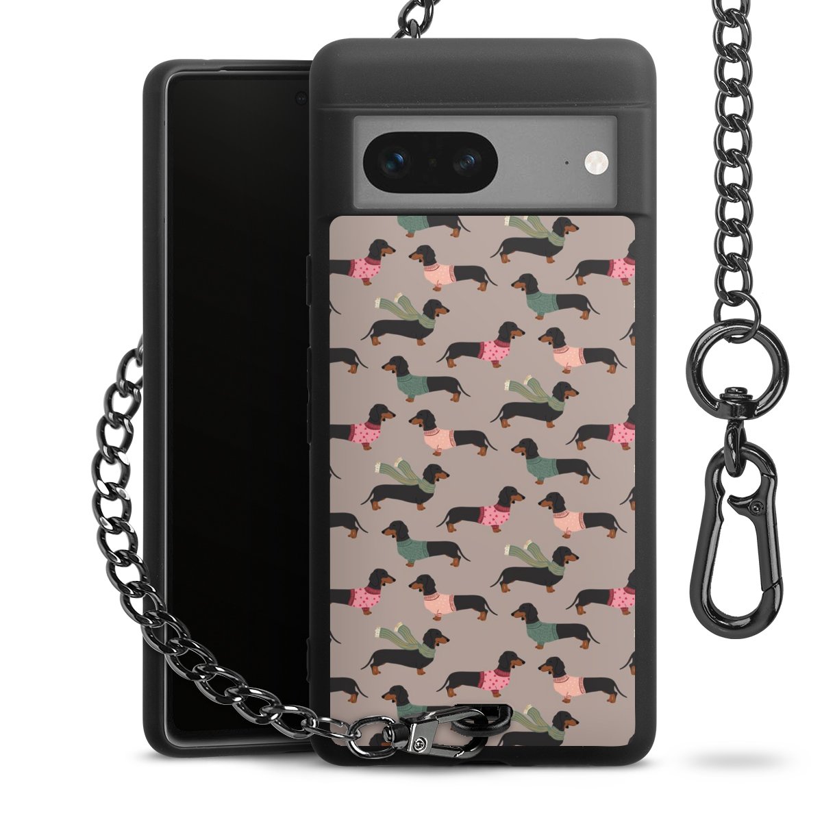 • Mattschwarze Handyhülle mit Metallkette