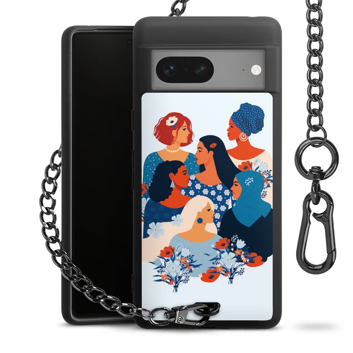 Die mattschwarze Silikon-Handyhülle besteht aus robustem TPU (thermoplastisches Polyurethan). Sie ist flexibel und schützt Dein Smartphone vor Stößen und Kratzern. Die Kette sowie der Karabinerhaken sind aus Metall in Gunmetal-Optik gefertigt. Für dieses Produkt kommen ausschließlich TÜV-geprüfte Materialien zum Einsatz.