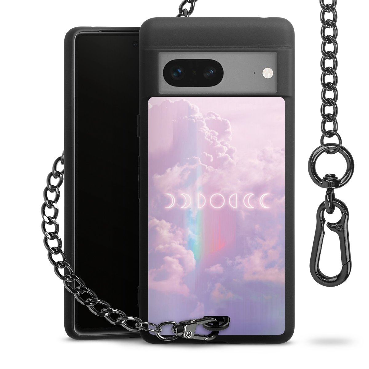 Die mattschwarze Silikon-Handyhülle besteht aus robustem TPU (thermoplastisches Polyurethan). Sie ist flexibel und schützt Dein Smartphone vor Stößen und Kratzern. Die Kette sowie der Karabinerhaken sind aus Metall in Gunmetal-Optik gefertigt. Für dieses Produkt kommen ausschließlich TÜV-geprüfte Materialien zum Einsatz.