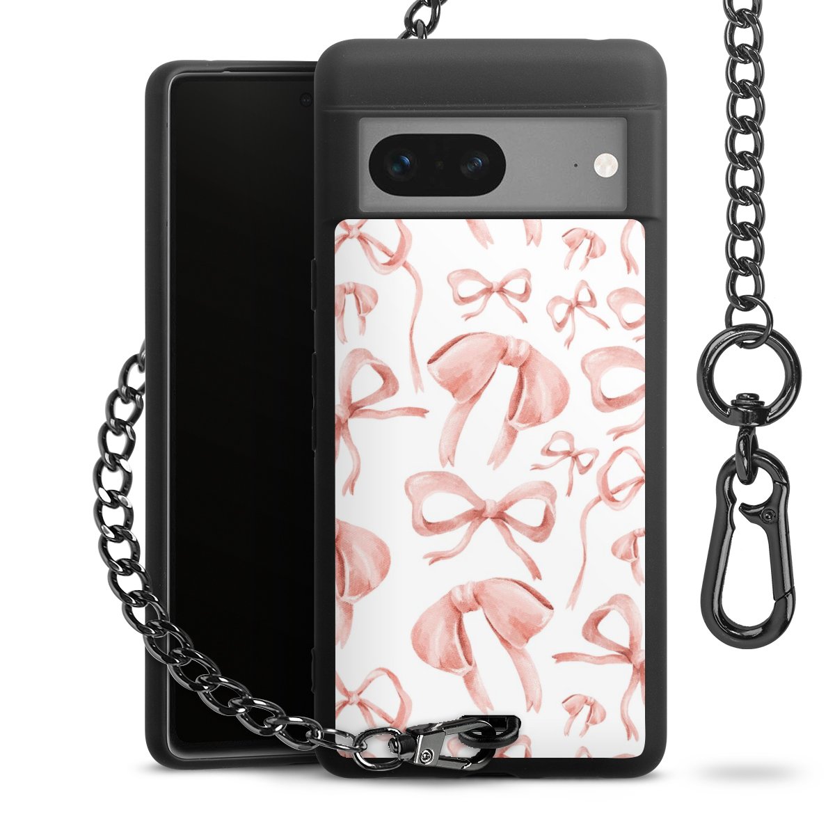 • Mattschwarze Handyhülle mit Metallkette