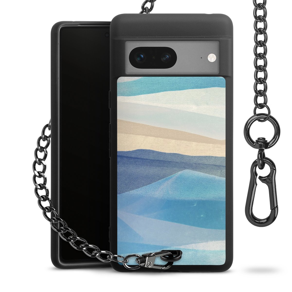 Die mattschwarze Silikon-Handyhülle besteht aus robustem TPU (thermoplastisches Polyurethan). Sie ist flexibel und schützt Dein Smartphone vor Stößen und Kratzern. Die Kette sowie der Karabinerhaken sind aus Metall in Gunmetal-Optik gefertigt. Für dieses Produkt kommen ausschließlich TÜV-geprüfte Materialien zum Einsatz.