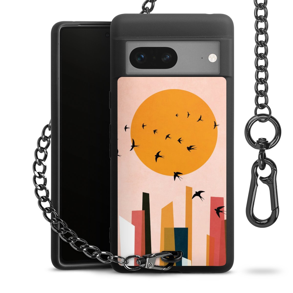 Die mattschwarze Silikon-Handyhülle besteht aus robustem TPU (thermoplastisches Polyurethan). Sie ist flexibel und schützt Dein Smartphone vor Stößen und Kratzern. Die Kette sowie der Karabinerhaken sind aus Metall in Gunmetal-Optik gefertigt. Für dieses Produkt kommen ausschließlich TÜV-geprüfte Materialien zum Einsatz.