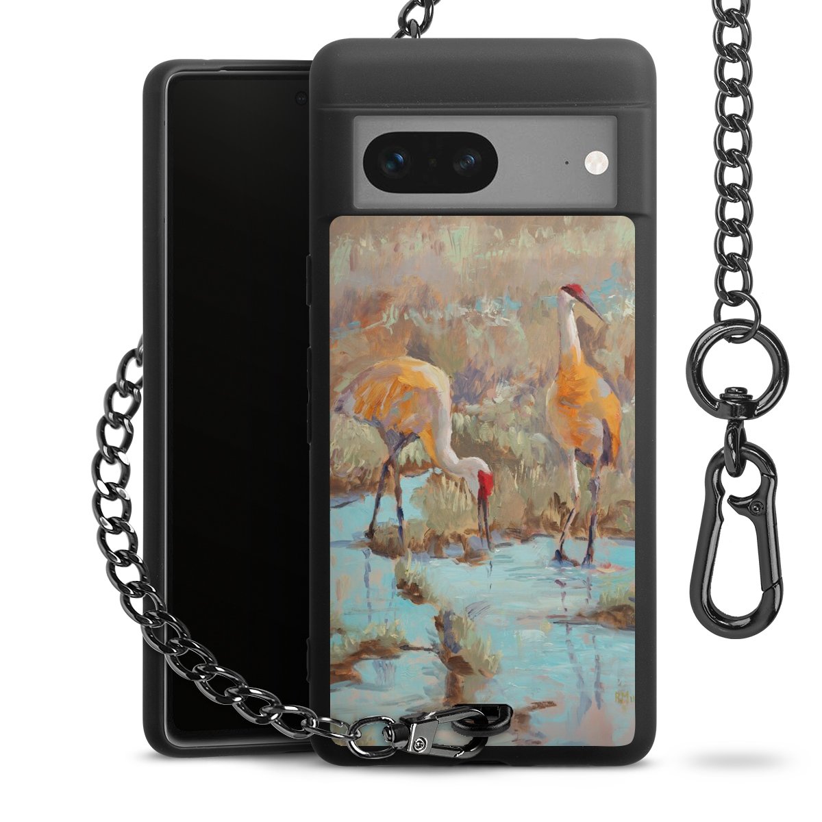 - Mattschwarze Handyhülle mit Metallkette