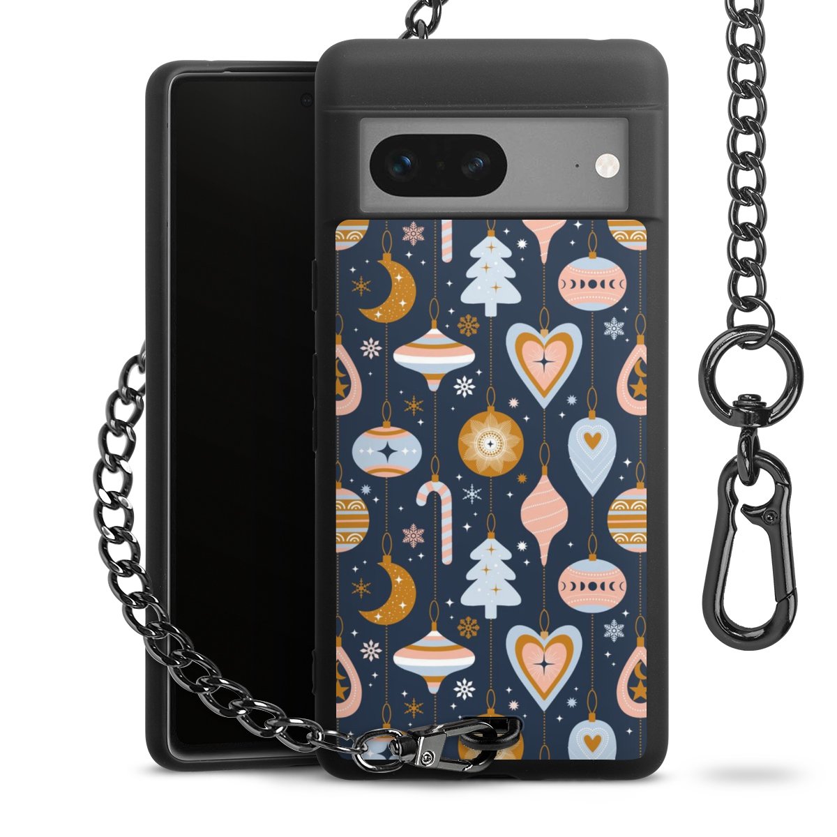 • Mattschwarze Handyhülle mit Metallkette
