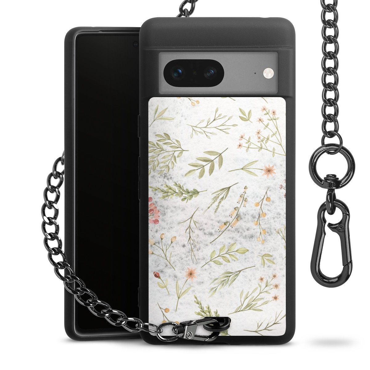 Die mattschwarze Silikon-Handyhülle besteht aus robustem TPU (thermoplastisches Polyurethan). Sie ist flexibel und schützt Dein Smartphone vor Stößen und Kratzern. Die Kette sowie der Karabinerhaken sind aus Metall in Gunmetal-Optik gefertigt. Für dieses Produkt kommen ausschließlich TÜV-geprüfte Materialien zum Einsatz.
