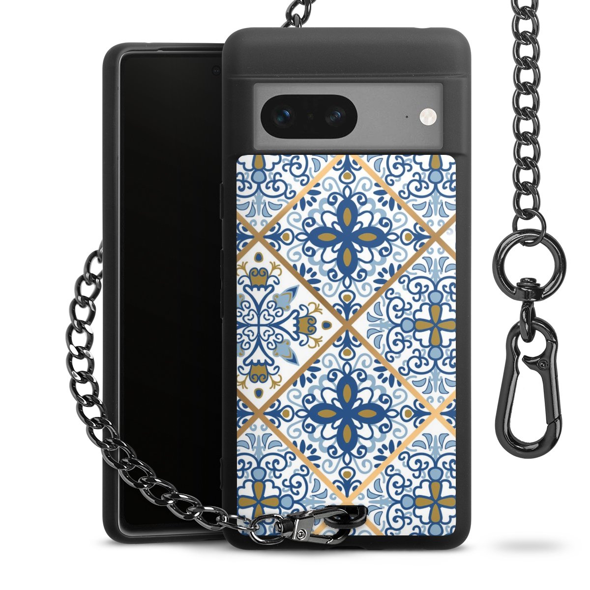 - Mattschwarze Handyhülle mit Metallkette
