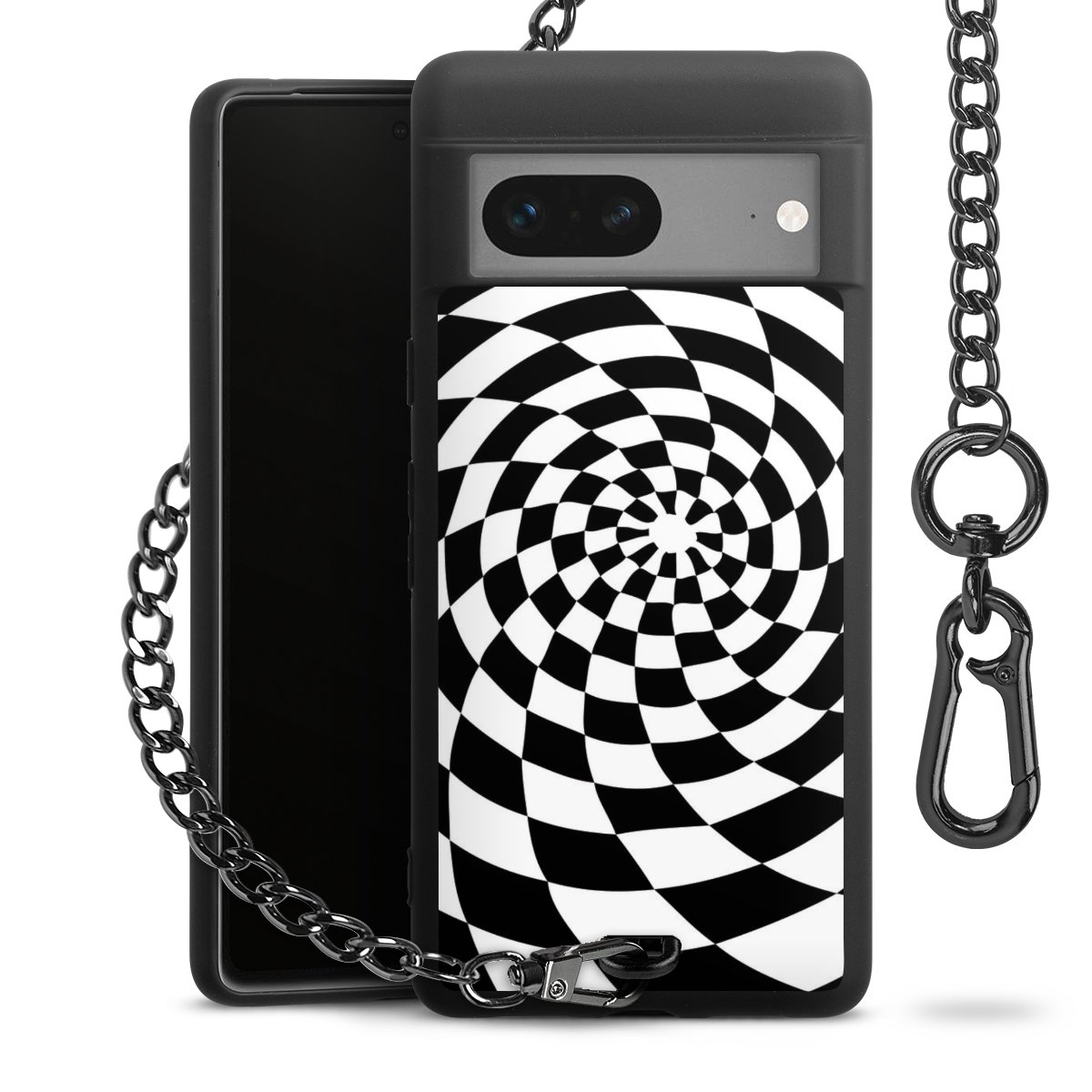 • Mattschwarze Handyhülle mit Metallkette