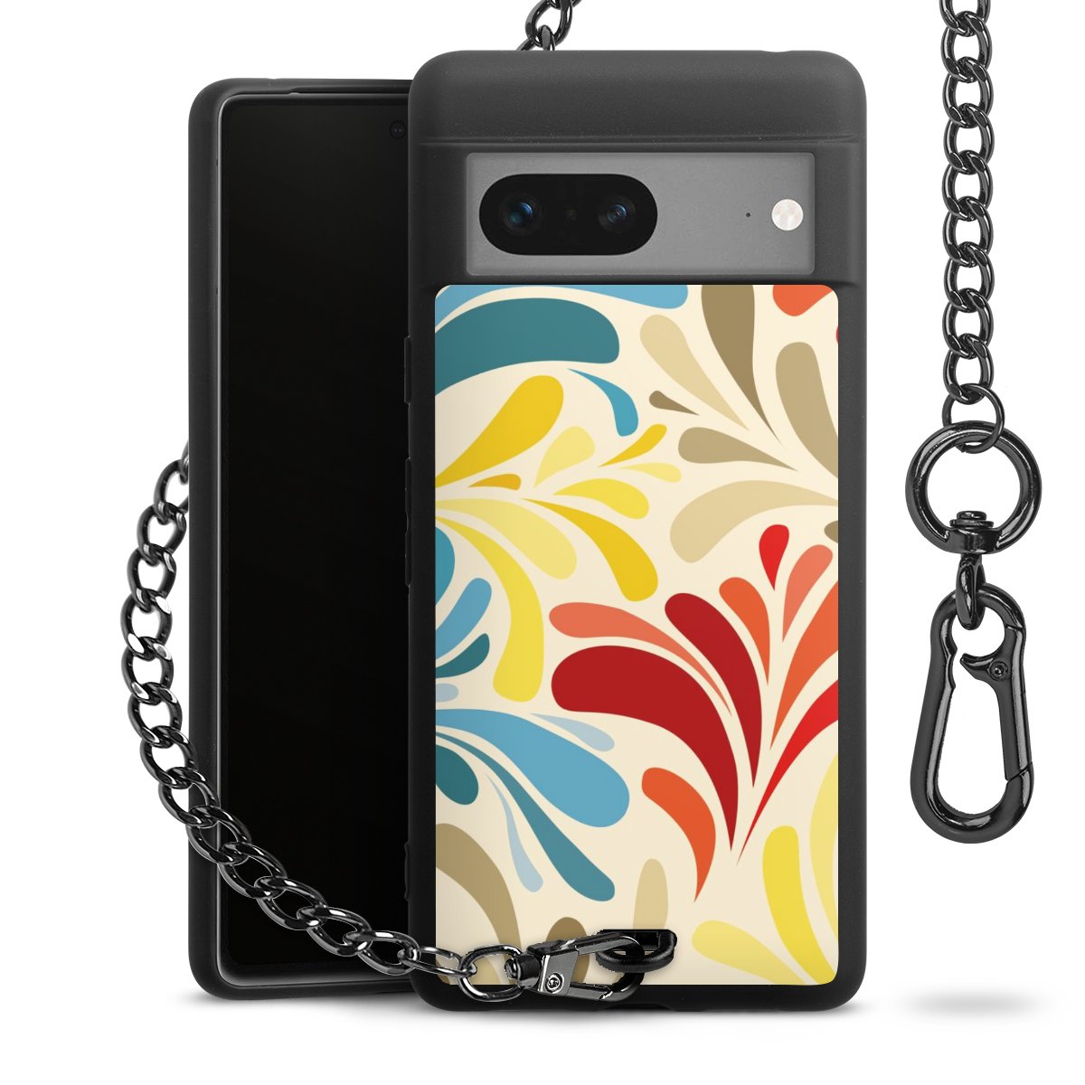 - Mattschwarze Handyhülle mit Metallkette