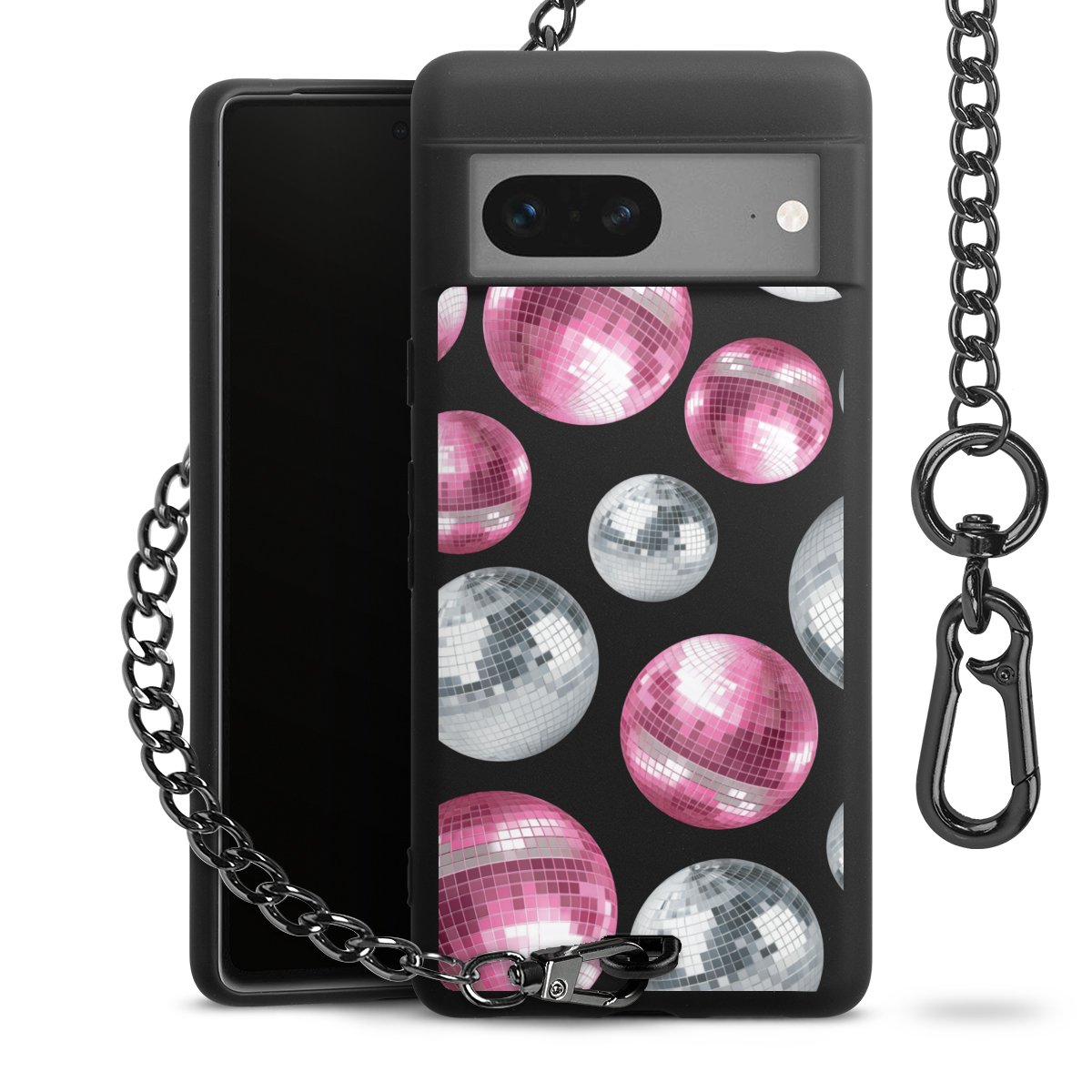 - Mattschwarze Handyhülle mit Metallkette