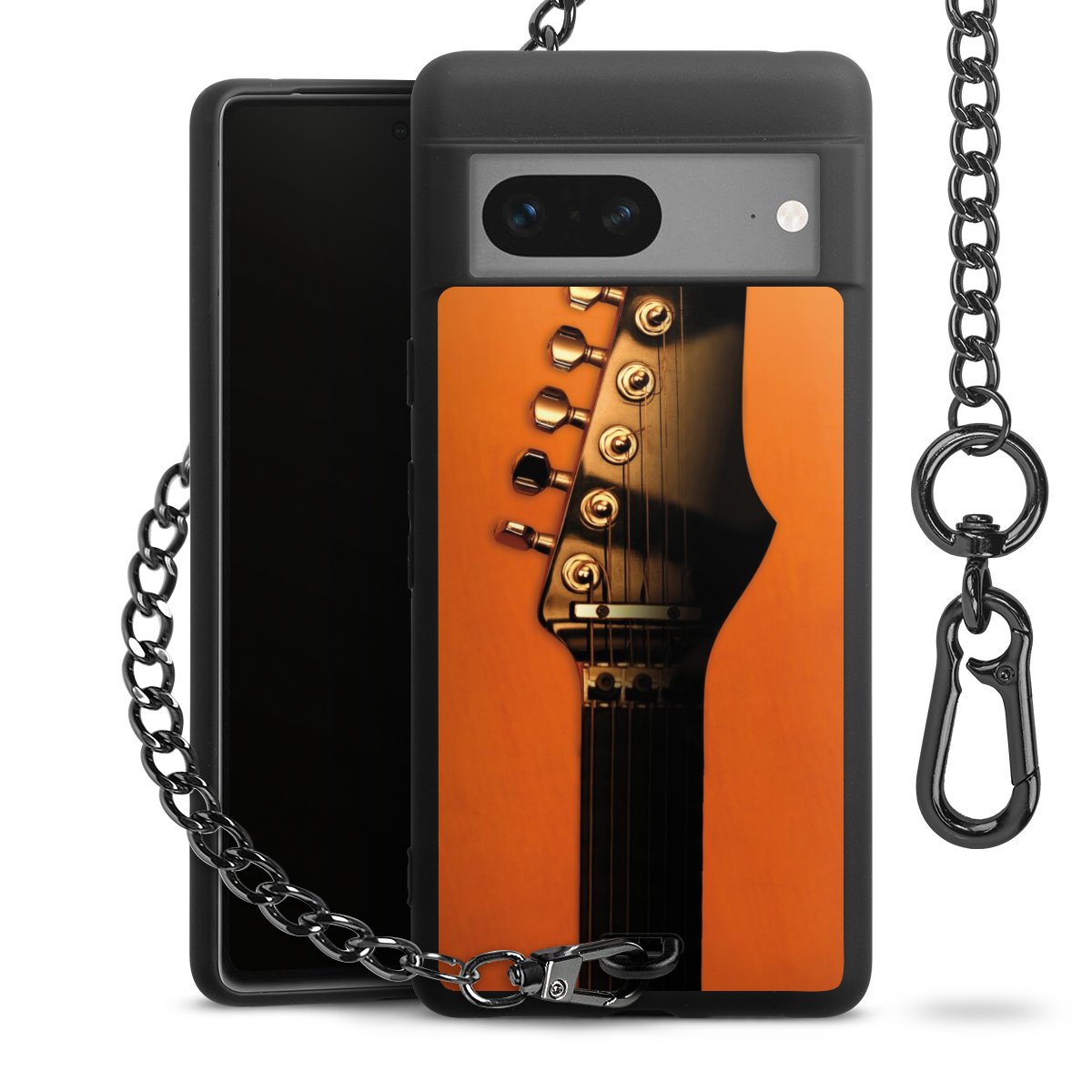 Die mattschwarze Silikon-Handyhülle besteht aus robustem TPU (thermoplastisches Polyurethan). Sie ist flexibel und schützt Dein Smartphone vor Stößen und Kratzern. Die Kette sowie der Karabinerhaken sind aus Metall in Gunmetal-Optik gefertigt. Für dieses Produkt kommen ausschließlich TÜV-geprüfte Materialien zum Einsatz.
