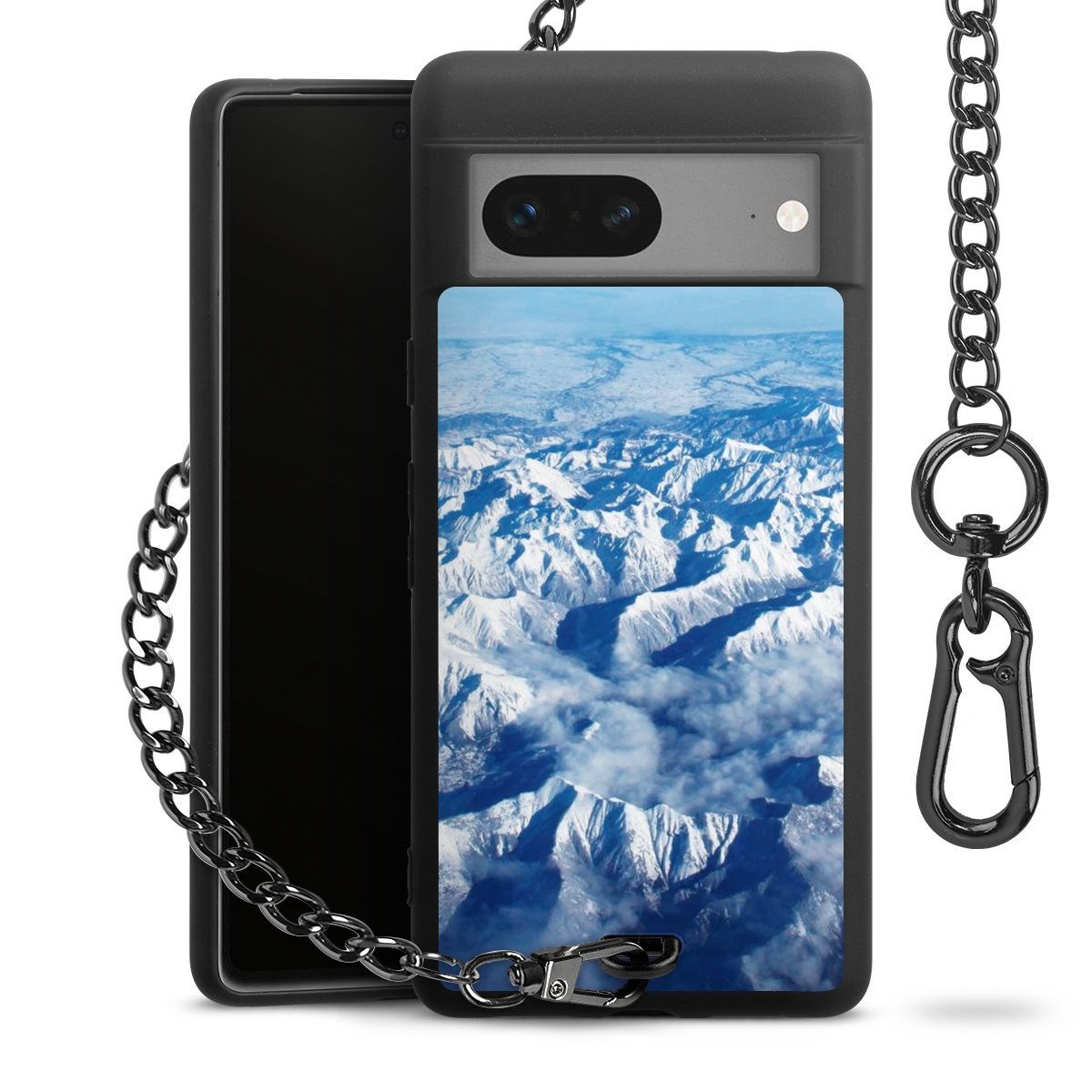 - Mattschwarze Handyhülle mit Metallkette