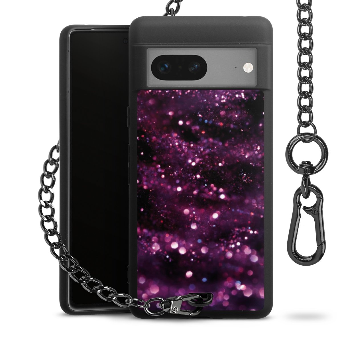 - Mattschwarze Handyhülle mit Metallkette