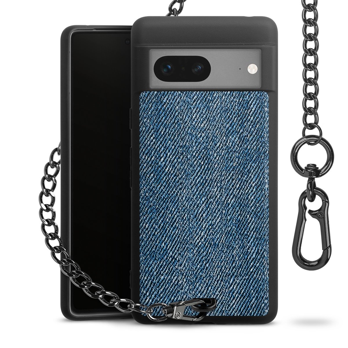 • Mattschwarze Handyhülle mit Metallkette