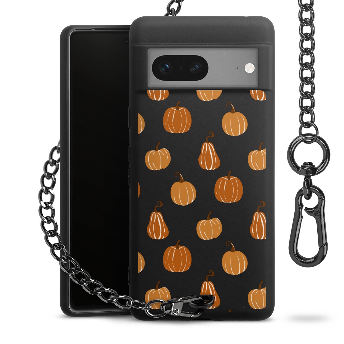 - Mattschwarze Handyhülle mit Metallkette