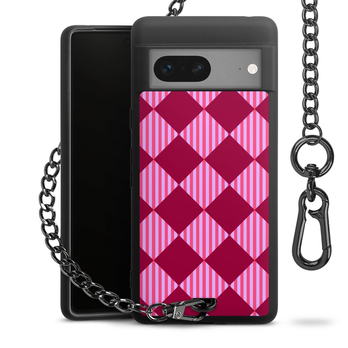 - Mattschwarze Handyhülle mit Metallkette