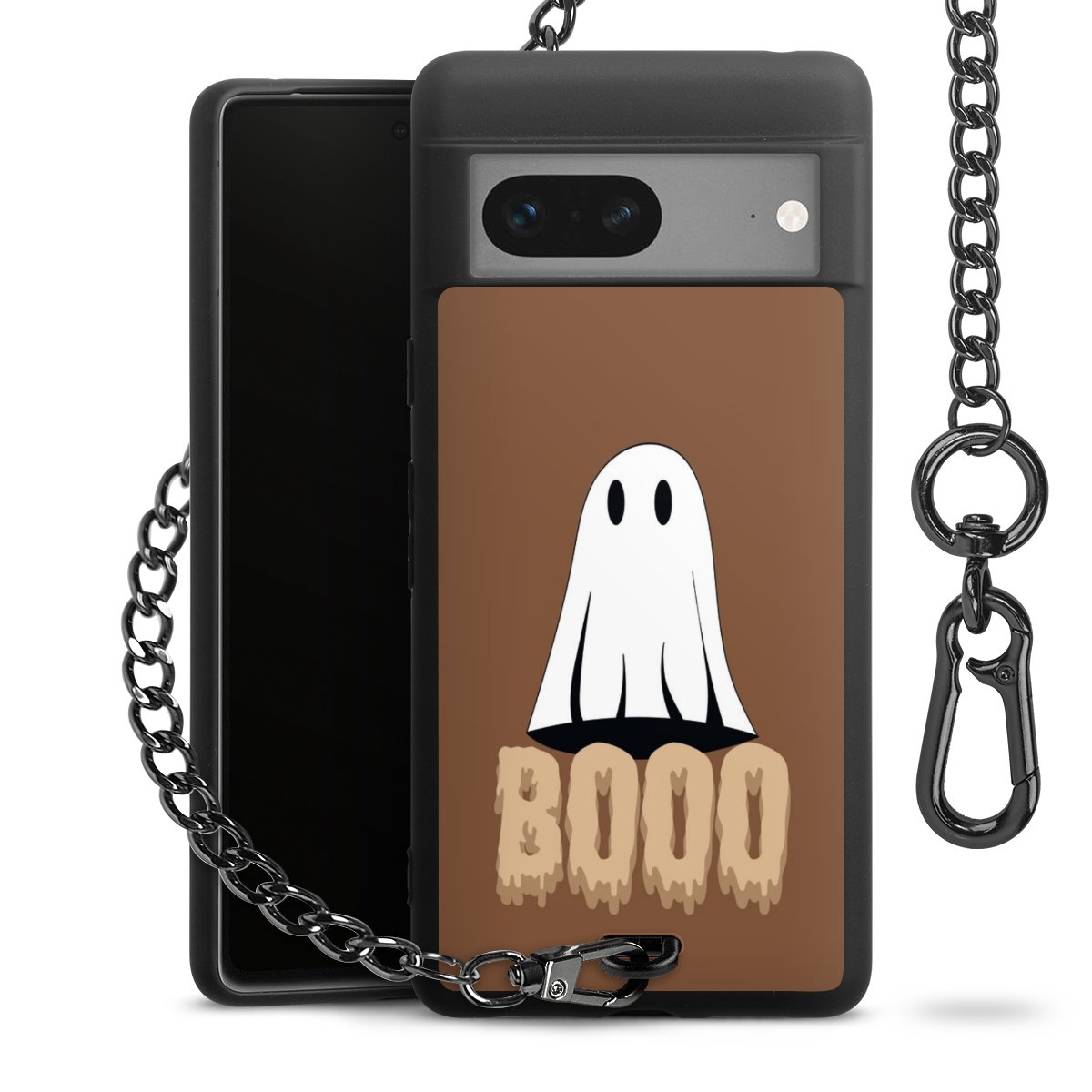 - Mattschwarze Handyhülle mit Metallkette