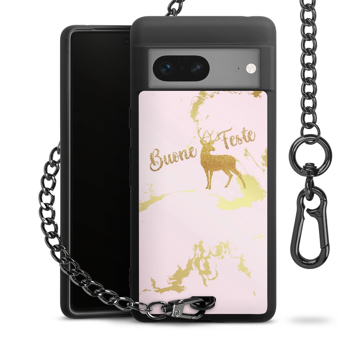 - Mattschwarze Handyhülle mit Metallkette