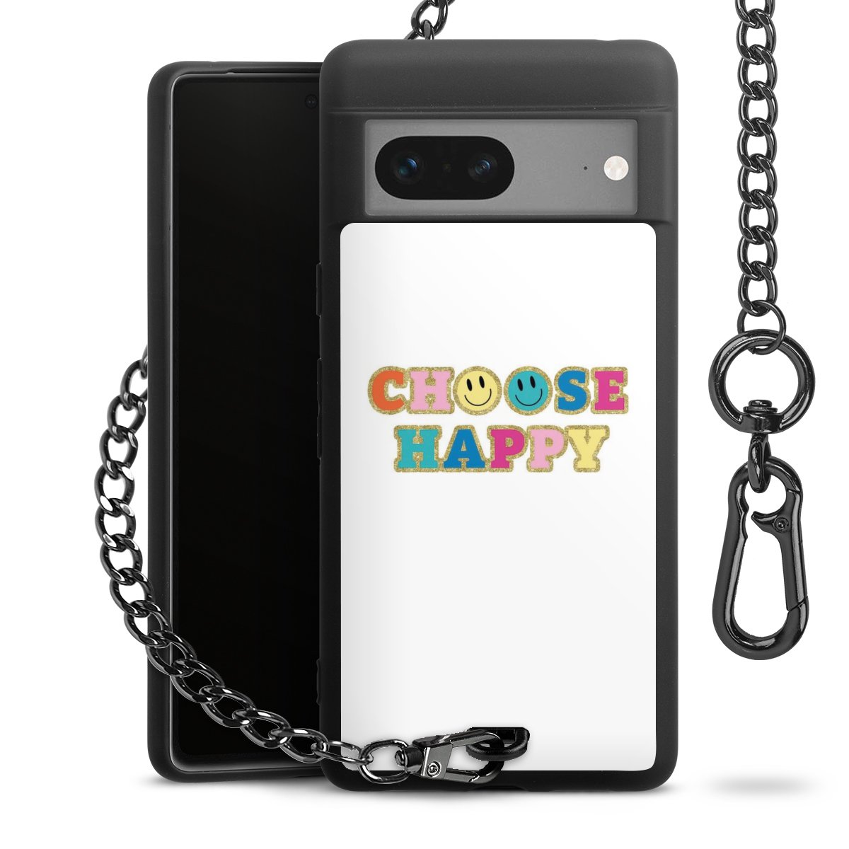 Die mattschwarze Silikon-Handyhülle besteht aus robustem TPU (thermoplastisches Polyurethan). Sie ist flexibel und schützt Dein Smartphone vor Stößen und Kratzern. Die Kette sowie der Karabinerhaken sind aus Metall in Gunmetal-Optik gefertigt. Für dieses Produkt kommen ausschließlich TÜV-geprüfte Materialien zum Einsatz.