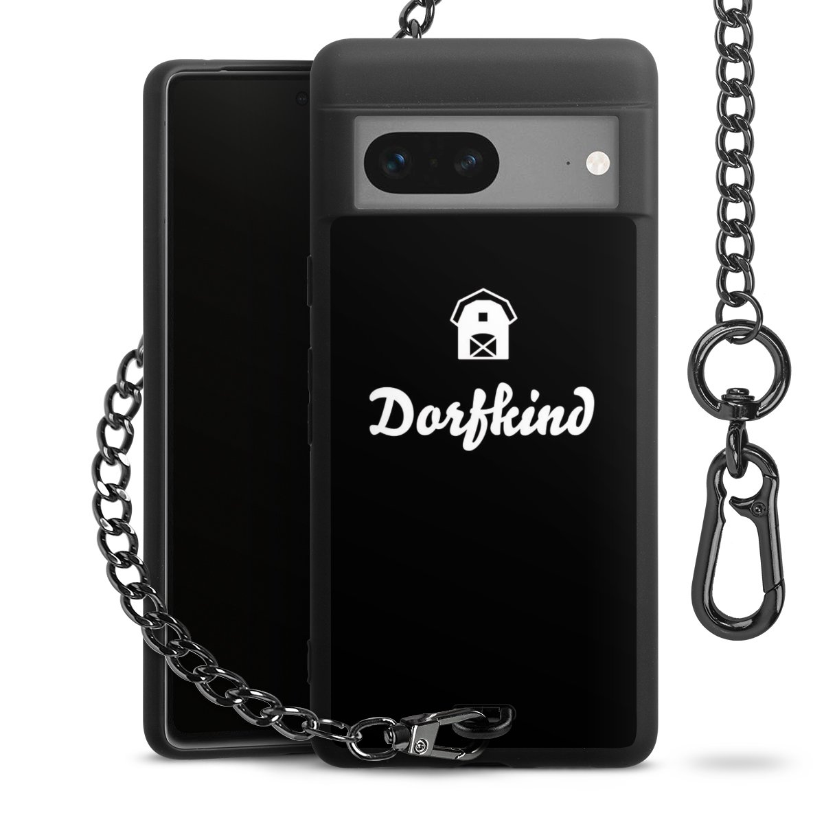 Die mattschwarze Silikon-Handyhülle besteht aus robustem TPU (thermoplastisches Polyurethan). Sie ist flexibel und schützt Dein Smartphone vor Stößen und Kratzern. Die Kette sowie der Karabinerhaken sind aus Metall in Gunmetal-Optik gefertigt. Für dieses Produkt kommen ausschließlich TÜV-geprüfte Materialien zum Einsatz.