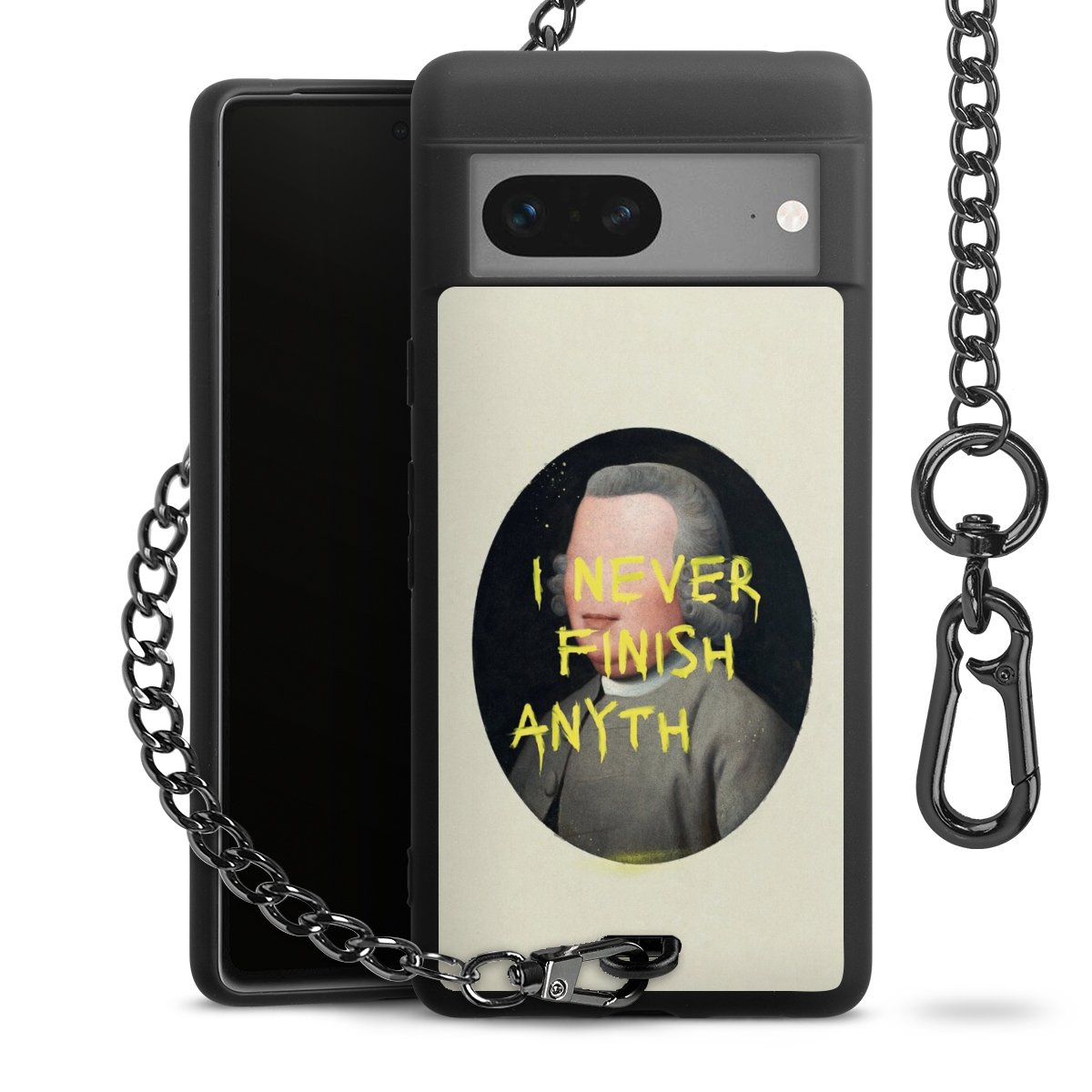 Die mattschwarze Silikon-Handyhülle besteht aus robustem TPU (thermoplastisches Polyurethan). Sie ist flexibel und schützt Dein Smartphone vor Stößen und Kratzern. Die Kette sowie der Karabinerhaken sind aus Metall in Gunmetal-Optik gefertigt. Für dieses Produkt kommen ausschließlich TÜV-geprüfte Materialien zum Einsatz.
