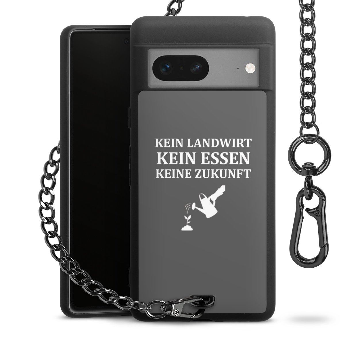 - Mattschwarze Handyhülle mit Metallkette