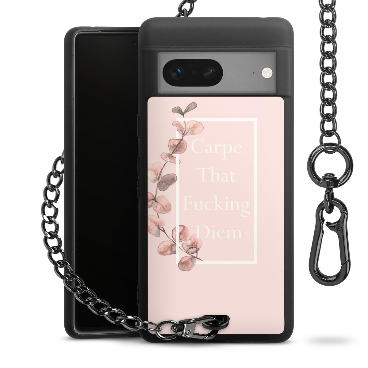 Die mattschwarze Silikon-Handyhülle besteht aus robustem TPU (thermoplastisches Polyurethan). Sie ist flexibel und schützt Dein Smartphone vor Stößen und Kratzern. Die Kette sowie der Karabinerhaken sind aus Metall in Gunmetal-Optik gefertigt. Für dieses Produkt kommen ausschließlich TÜV-geprüfte Materialien zum Einsatz.