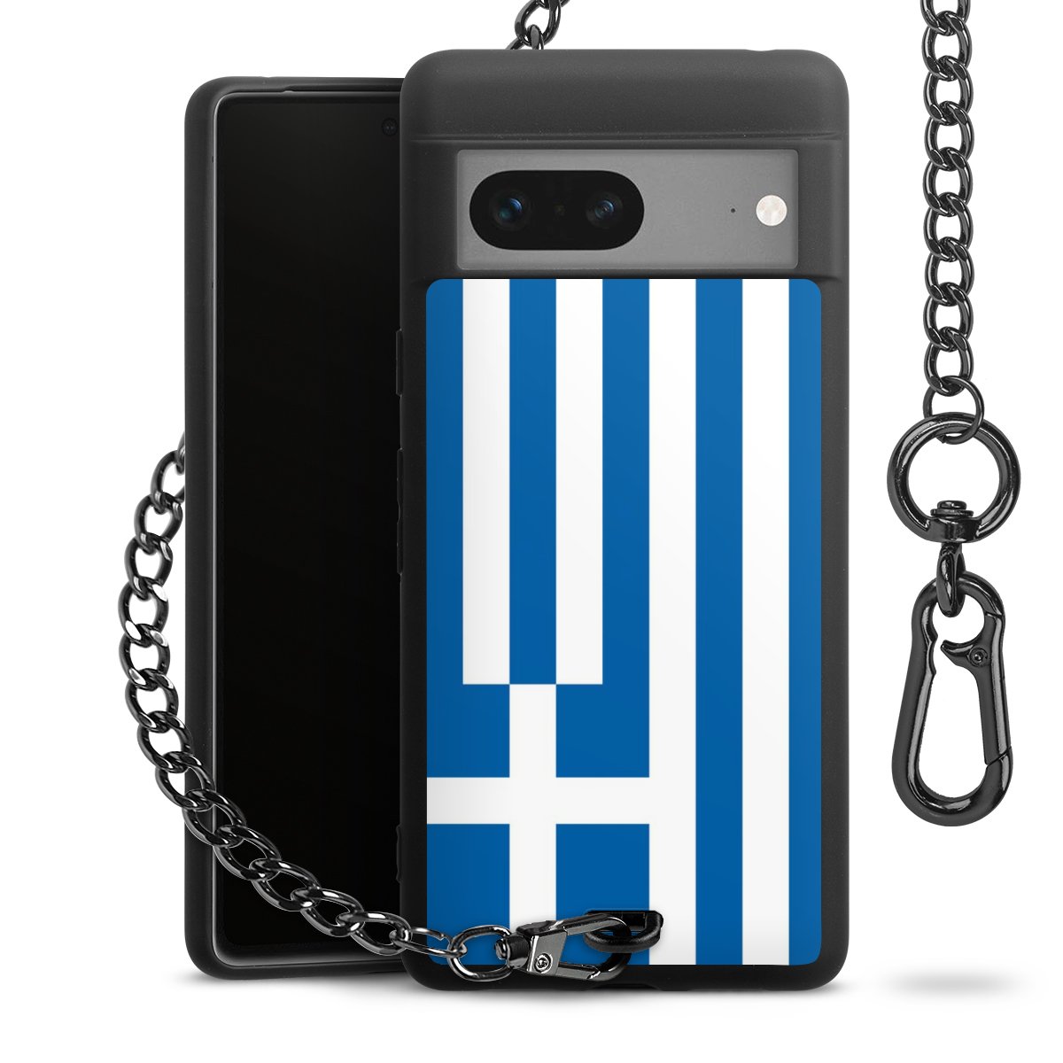 Die mattschwarze Silikon-Handyhülle besteht aus robustem TPU (thermoplastisches Polyurethan). Sie ist flexibel und schützt Dein Smartphone vor Stößen und Kratzern. Die Kette sowie der Karabinerhaken sind aus Metall in Gunmetal-Optik gefertigt. Für dieses Produkt kommen ausschließlich TÜV-geprüfte Materialien zum Einsatz.