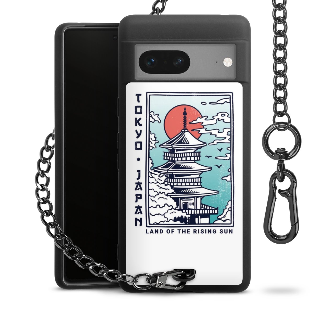 Die mattschwarze Silikon-Handyhülle besteht aus robustem TPU (thermoplastisches Polyurethan). Sie ist flexibel und schützt Dein Smartphone vor Stößen und Kratzern. Die Kette sowie der Karabinerhaken sind aus Metall in Gunmetal-Optik gefertigt. Für dieses Produkt kommen ausschließlich TÜV-geprüfte Materialien zum Einsatz.