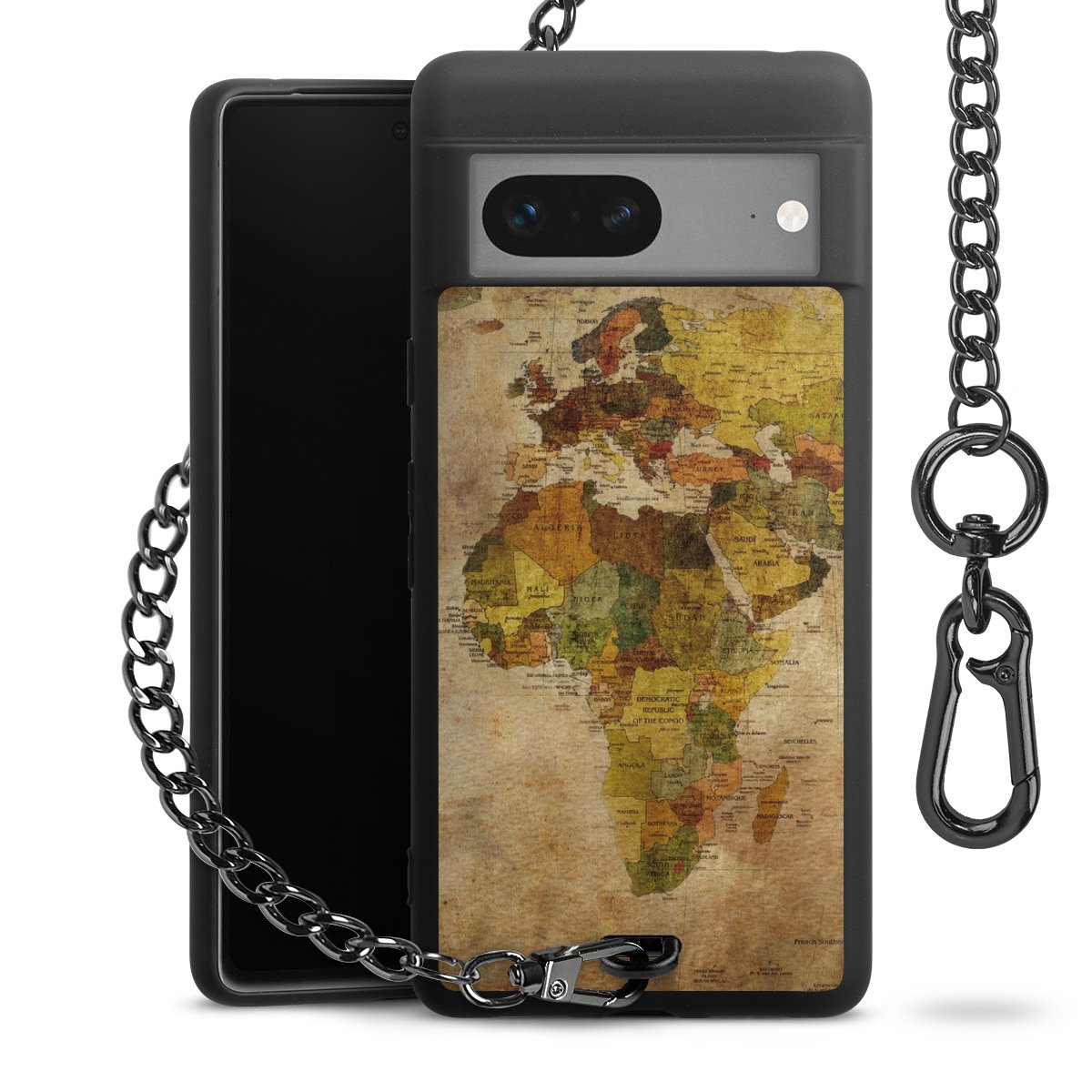 - Mattschwarze Handyhülle mit Metallkette