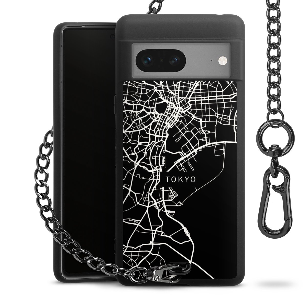 - Mattschwarze Handyhülle mit Metallkette
