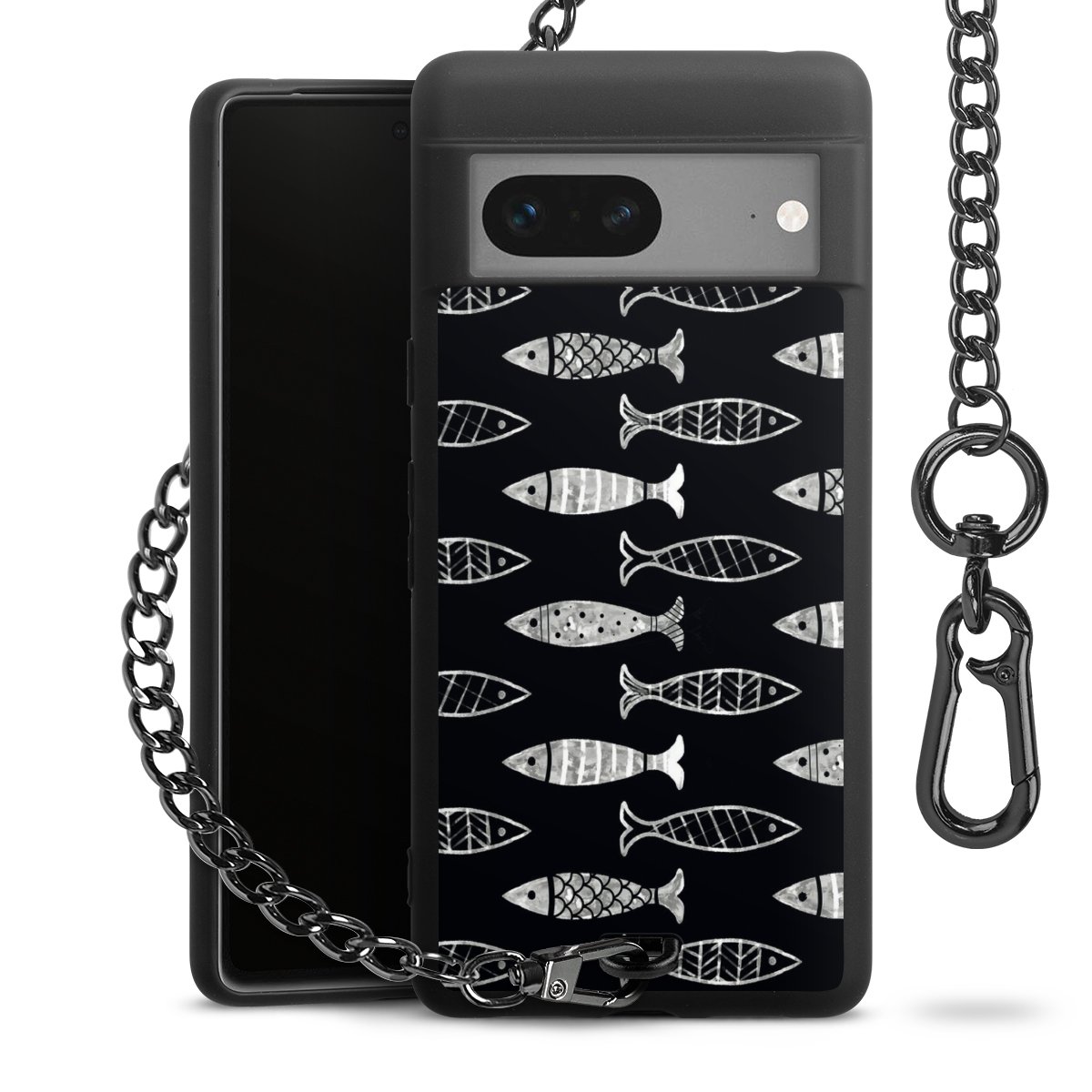 • Mattschwarze Handyhülle mit Metallkette