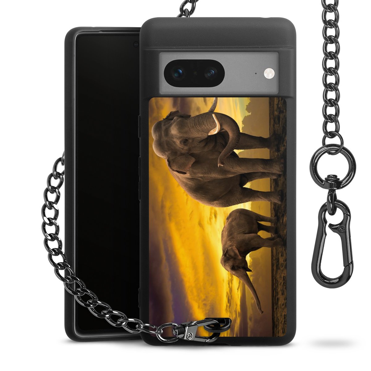 Die mattschwarze Silikon-Handyhülle besteht aus robustem TPU (thermoplastisches Polyurethan). Sie ist flexibel und schützt Dein Smartphone vor Stößen und Kratzern. Die Kette sowie der Karabinerhaken sind aus Metall in Gunmetal-Optik gefertigt. Für dieses Produkt kommen ausschließlich TÜV-geprüfte Materialien zum Einsatz.