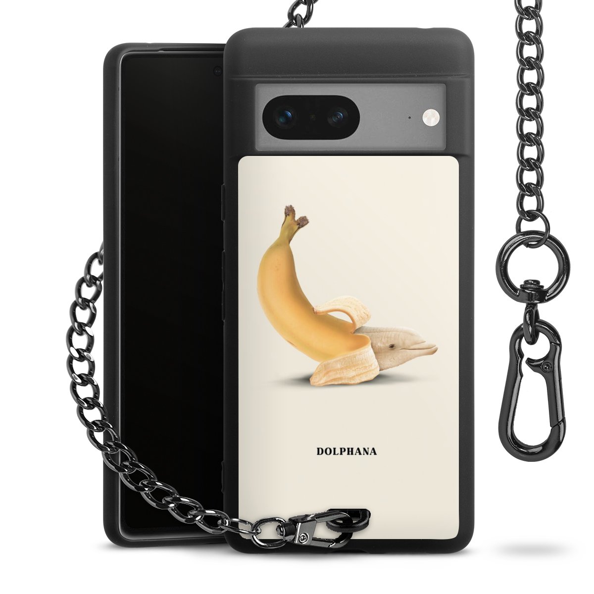 Die mattschwarze Silikon-Handyhülle besteht aus robustem TPU (thermoplastisches Polyurethan). Sie ist flexibel und schützt Dein Smartphone vor Stößen und Kratzern. Die Kette sowie der Karabinerhaken sind aus Metall in Gunmetal-Optik gefertigt. Für dieses Produkt kommen ausschließlich TÜV-geprüfte Materialien zum Einsatz.