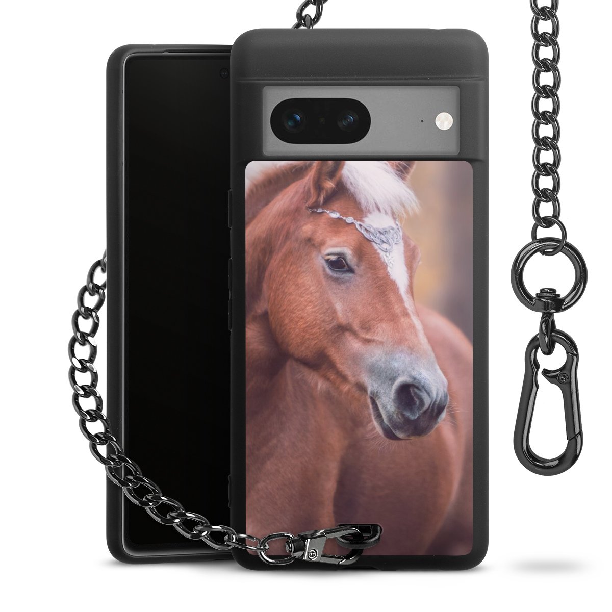 • Mattschwarze Handyhülle mit Metallkette
