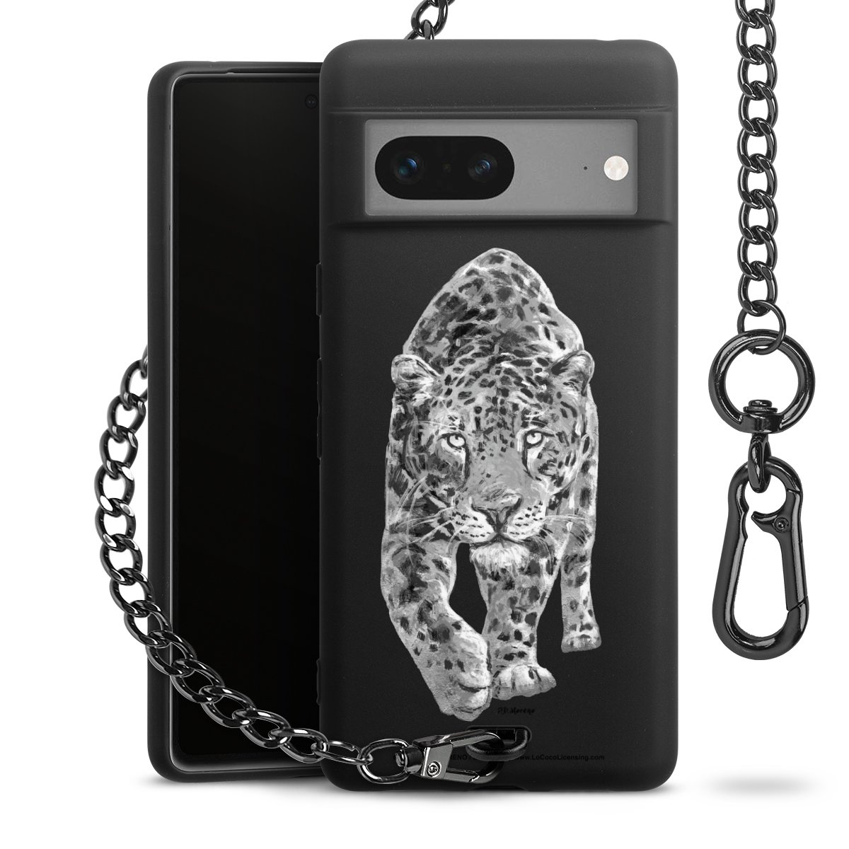 Die mattschwarze Silikon-Handyhülle besteht aus robustem TPU (thermoplastisches Polyurethan). Sie ist flexibel und schützt Dein Smartphone vor Stößen und Kratzern. Die Kette sowie der Karabinerhaken sind aus Metall in Gunmetal-Optik gefertigt. Für dieses Produkt kommen ausschließlich TÜV-geprüfte Materialien zum Einsatz.