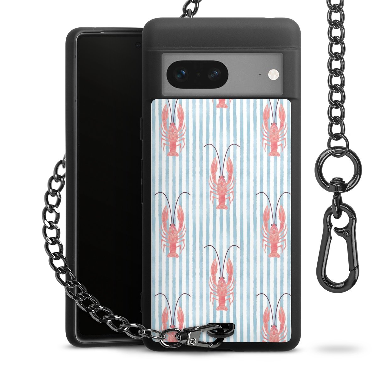 • Mattschwarze Handyhülle mit Metallkette