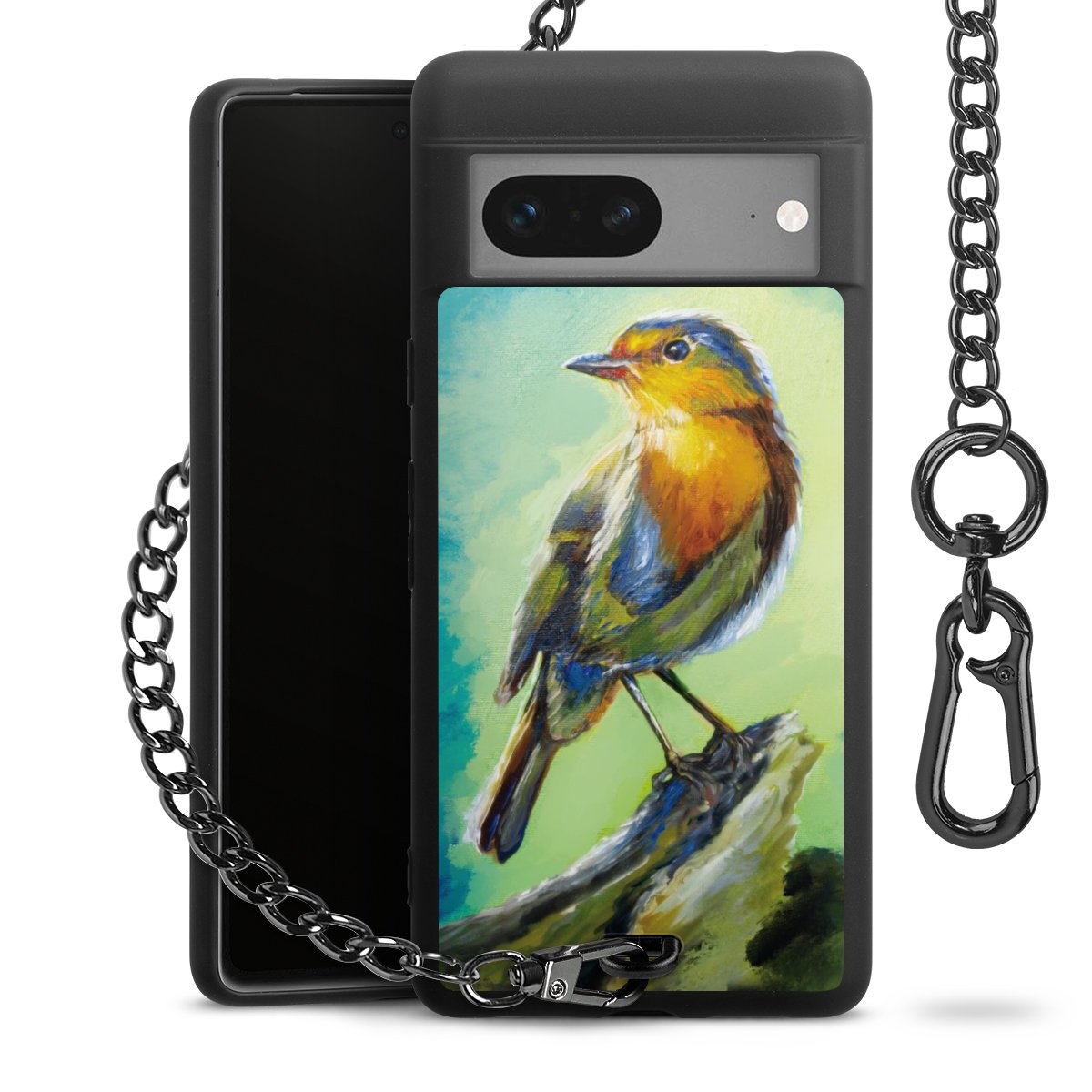 Die mattschwarze Silikon-Handyhülle besteht aus robustem TPU (thermoplastisches Polyurethan). Sie ist flexibel und schützt Dein Smartphone vor Stößen und Kratzern. Die Kette sowie der Karabinerhaken sind aus Metall in Gunmetal-Optik gefertigt. Für dieses Produkt kommen ausschließlich TÜV-geprüfte Materialien zum Einsatz.