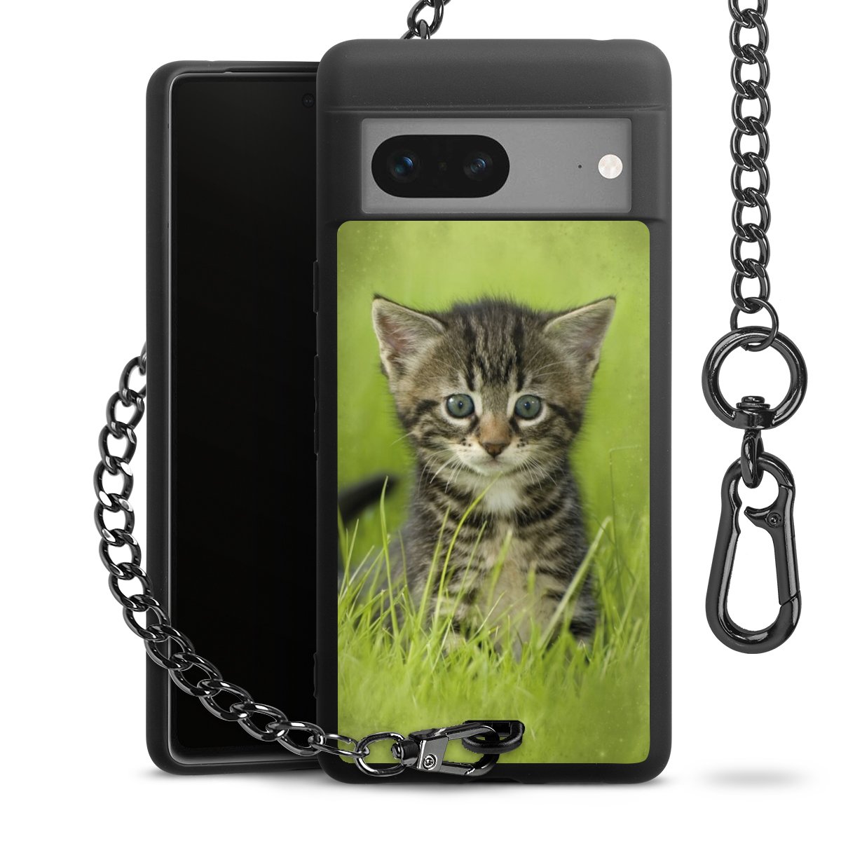 Die mattschwarze Silikon-Handyhülle besteht aus robustem TPU (thermoplastisches Polyurethan). Sie ist flexibel und schützt Dein Smartphone vor Stößen und Kratzern. Die Kette sowie der Karabinerhaken sind aus Metall in Gunmetal-Optik gefertigt. Für dieses Produkt kommen ausschließlich TÜV-geprüfte Materialien zum Einsatz.