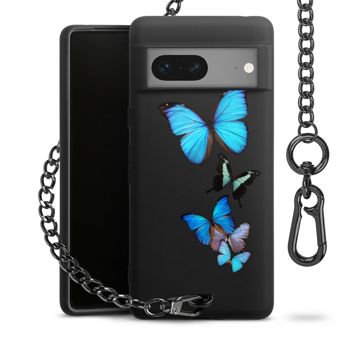 Die mattschwarze Silikon-Handyhülle besteht aus robustem TPU (thermoplastisches Polyurethan). Sie ist flexibel und schützt Dein Smartphone vor Stößen und Kratzern. Die Kette sowie der Karabinerhaken sind aus Metall in Gunmetal-Optik gefertigt. Für dieses Produkt kommen ausschließlich TÜV-geprüfte Materialien zum Einsatz.