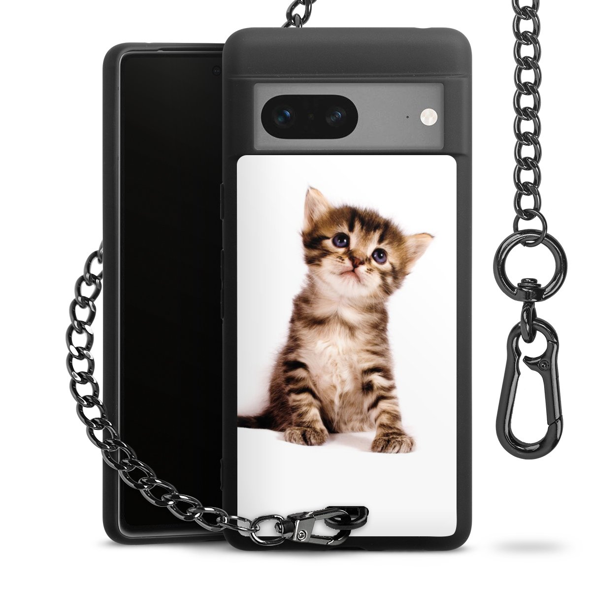 Die mattschwarze Silikon-Handyhülle besteht aus robustem TPU (thermoplastisches Polyurethan). Sie ist flexibel und schützt Dein Smartphone vor Stößen und Kratzern. Die Kette sowie der Karabinerhaken sind aus Metall in Gunmetal-Optik gefertigt. Für dieses Produkt kommen ausschließlich TÜV-geprüfte Materialien zum Einsatz.