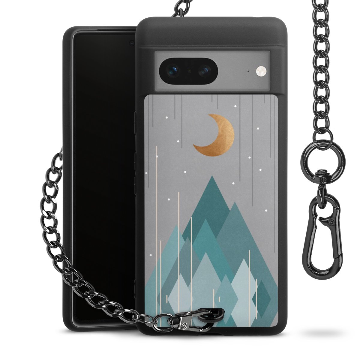• Mattschwarze Handyhülle mit Metallkette
