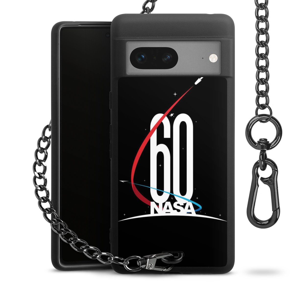 Die mattschwarze Silikon-Handyhülle besteht aus robustem TPU (thermoplastisches Polyurethan). Sie ist flexibel und schützt Dein Smartphone vor Stößen und Kratzern. Die Kette sowie der Karabinerhaken sind aus Metall in Gunmetal-Optik gefertigt. Für dieses Produkt kommen ausschließlich TÜV-geprüfte Materialien zum Einsatz.