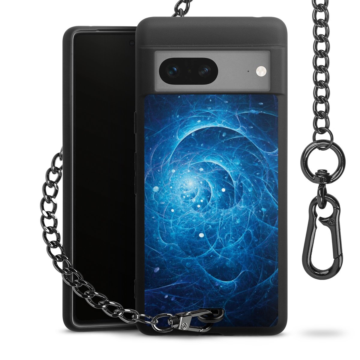 - Mattschwarze Handyhülle mit Metallkette